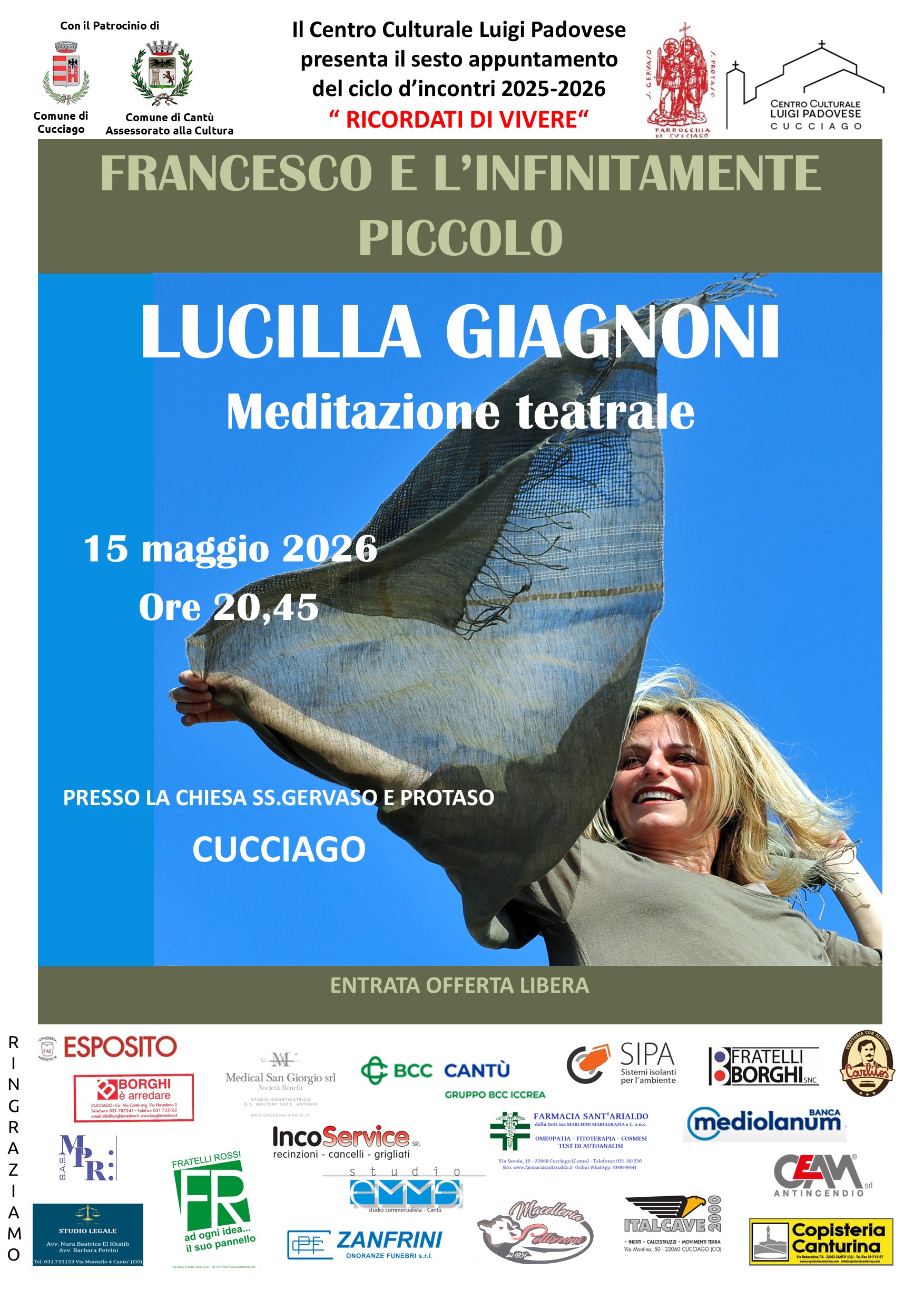 Il Centro Culturale Luigi Padovese, con il patrocinio del Comune di Cucciago e del Comune di Cantù, è lieto di invitare la cittadinanza al sesto appuntamento del ciclo di incontri 2025-2026 "RICORDATI DI VIVERE".